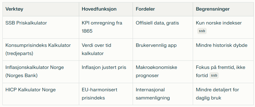 Prisindeks kalkulator er et essensielt verktøy for å justere priser for inflasjon i Norge. Dette hjelper deg med å sammenligne kjøpekraft over tid ved å bruke offisiell data fra Statistisk sentralbyrå (SSB). Enten du planlegger budsjett, vurderer investeringer eller analyserer prisutvikling, gir en prisindeks kalkulator klare innsikter i konsumprisindeks (KPI) og inflasjon Norge.